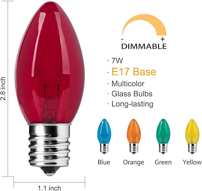 • Long lasting life: 7W 120V bulbs last for 3000 hours