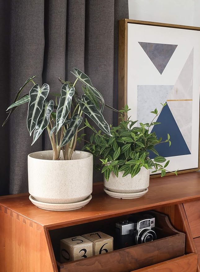 • Unique Variegated Color: Bring something special to the greenery for every planter pots with our Reactive Glazed Beige; Finished with a reactive glaze—a technique admired for its variegated coloring—each piece is subtly one-of-a-kind