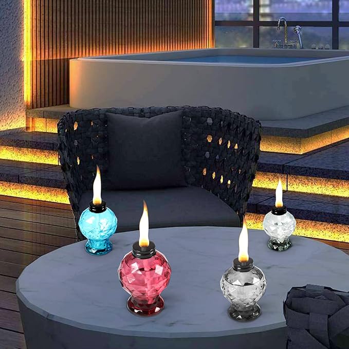 • Easy to Refill: Open the glass table torche cap and add torch oil, which can be refilled and used again. Please use the lid to extinguish the glass table torch flame