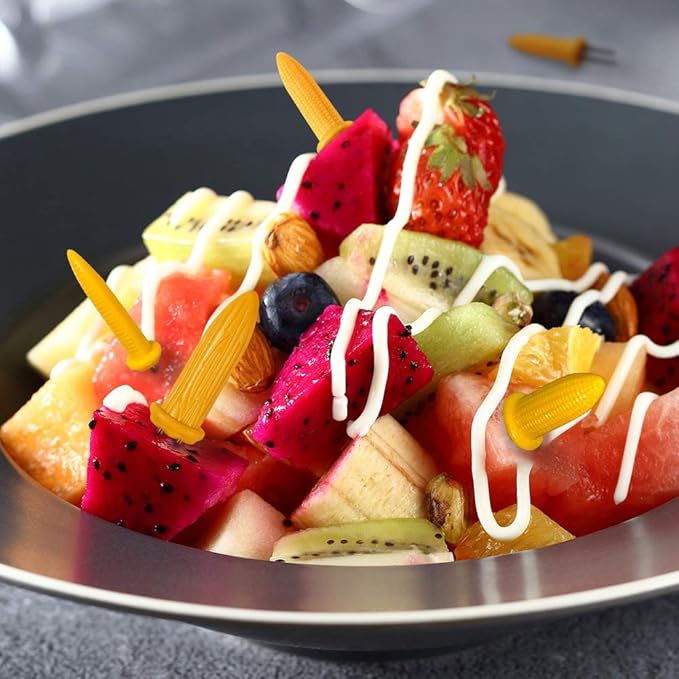 • [Easy-Clean & Long-Lasting] - Stainless steel spikes wipe clean in seconds; plastic handles resist stains and odors. Replace disposable wooden sticks sustainably – survives 500+ uses in dishwasher-safe cycles.