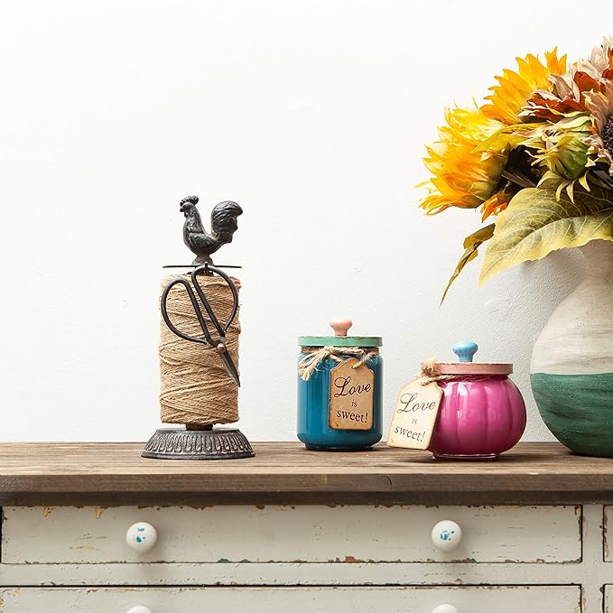 • Vintage Design: Our jute twine spools is designed in rural retro style, with a lively rooster. It can add elegance and beauty to the space where you putted with it.