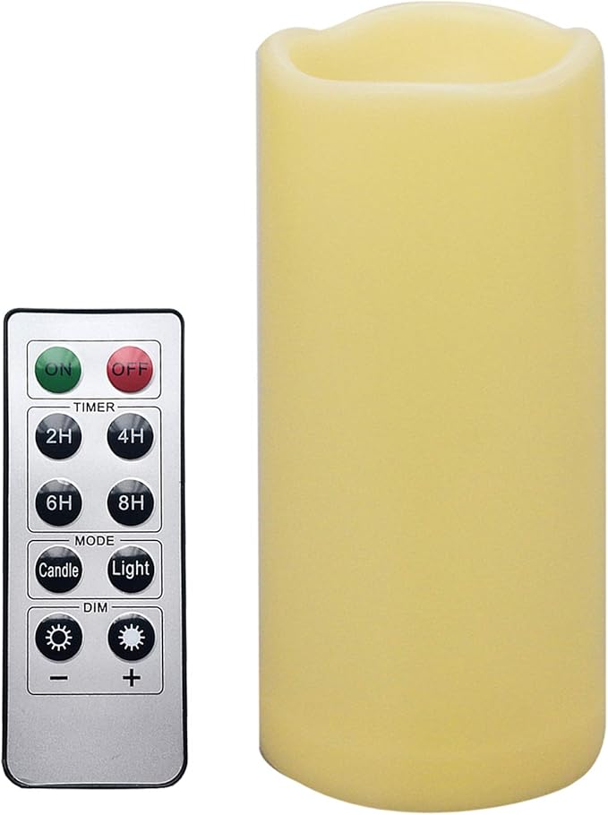 • 【Easy to use with remote】The remote has a 10-20 foot range. You can use the remote control to turn on and off the flameless LED candle, set the timer (2H, 4H, 6H and 8H daily cycle timers are available), select the mode (flickering or steady light) or choose the brightness level. Set 4H timer, the candle light stays on for 4 hours and turns off automatically for 20 hours and then on again itself on the second day.