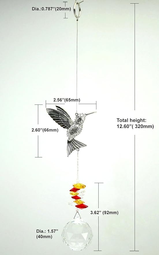 • Prisms: 40mm clear faceted crystal ball & themed multi color super thin edge crystal prisms cascade echoing the higher above metal motif charm, ended with a diameter 2cm stainless key ring at the top for easier hanging