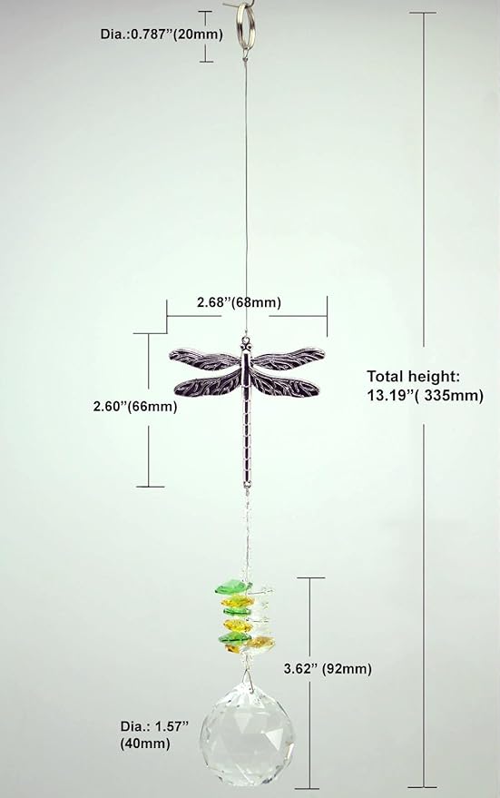 • Prisms: 40mm clear faceted crystal ball & themed multi color super thin edge crystal prisms cascade echoing the higher above metal motif charm, ended with a diameter 2cm stainless key ring at the top for easier hanging