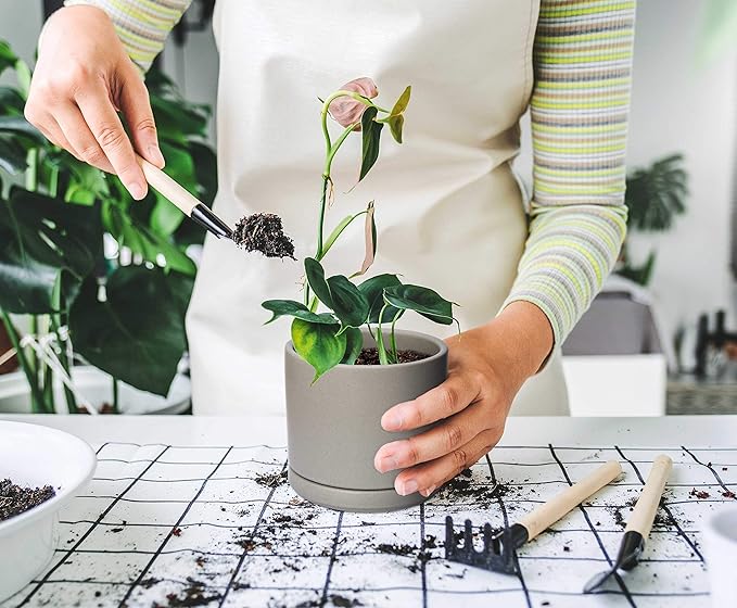 • Small Set of 2 Plant Pots Dimensions: 4.6" Diameter (4.2" Inner Diameter) * 4.5" Height; 6" Diameter (5.4" Inner Diameter) * 6" Height. Potting Soil Needed: 4-inch 0.8 qt; 6-inch 2 qt.