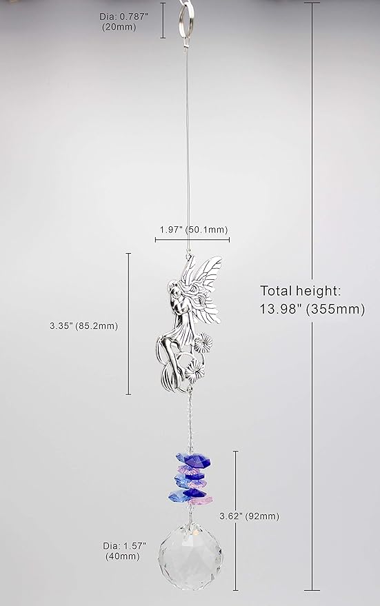 • Prisms: 40mm clear faceted crystal ball & themed multi color super thin edge crystal prisms cascade echoing the higher above metal motif charm, ended with a diameter 2cm stainless key ring at the top for easier hanging
