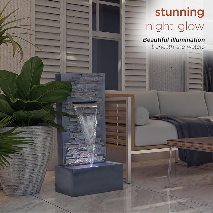 • Elegant Cascading Stone Design: The 32" Tall Modern Stone Wall Fountain adds a stunning and natural touch to your garden, patio, or backyard with its realistic stone wall design and soothing water flow.