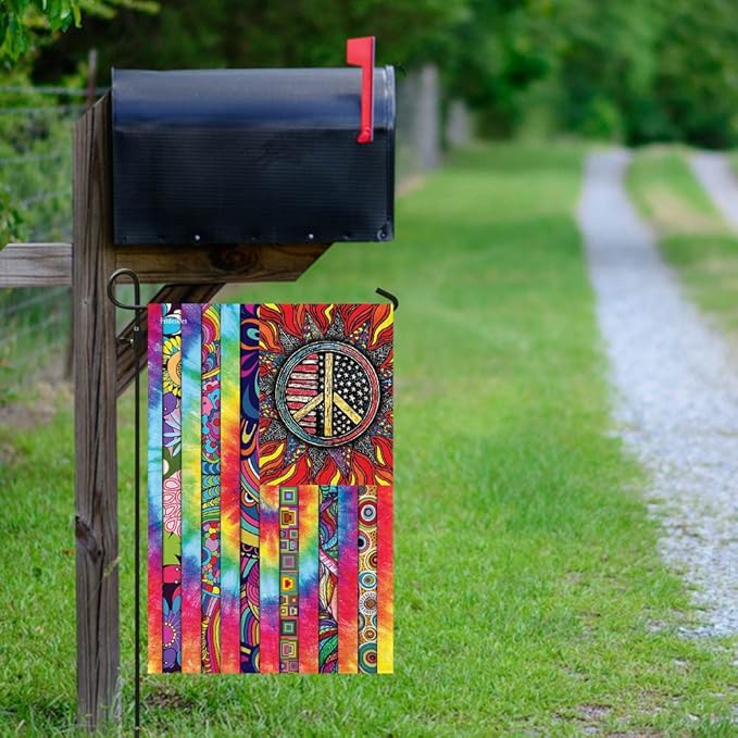 FLAGWIX Hippie Peace Flags, Summer Flag Decorations For Home, Outside, House Flag (30 x 40), Sunflower Hippie Decor House Flag, USA House Garden Flags, Premium Polyester, Decorative Outdoor Flags