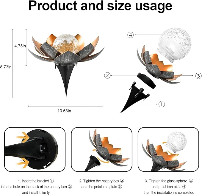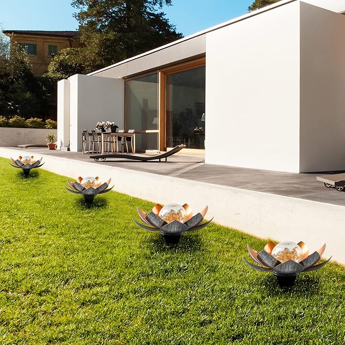 • [Romantic decoration] At night, they emit a warm white glow, bringing a charming decorative effect to your garden at night. The beautiful lotus shape and subtle water ripple patterns are displayed on your terrace in a special way, and the beautiful visual effects create a romantic atmosphere. This is your preferred gift for family and friends
