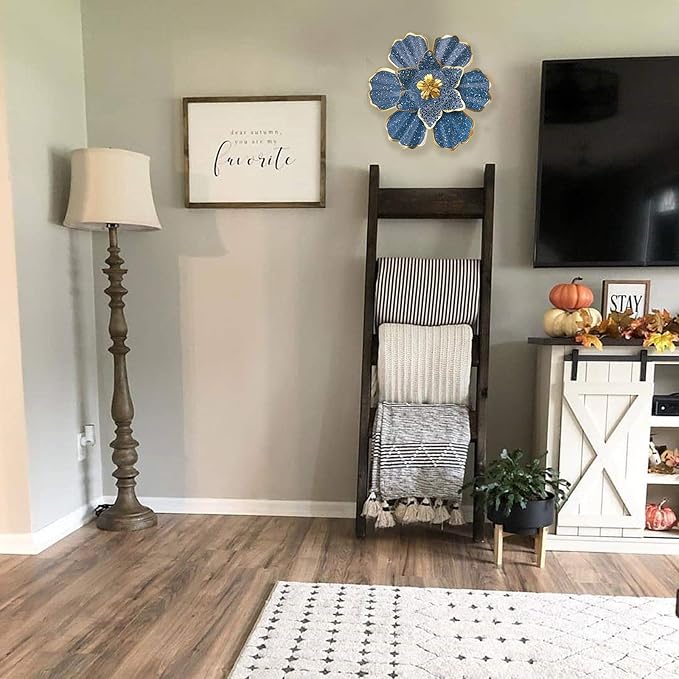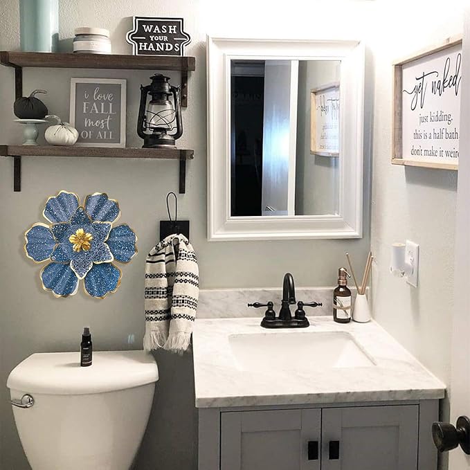 • 【WIDELY APPLICATION】This metal wall art is a dimensional blooming flower with a bright and vibrant Blue. The metal flower wall art will add a splash of color for Bathroom Patio Fence Garden Bedroom Living Room, and more.
