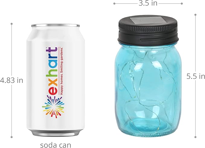 • VINTAGE SOLAR MASON JAR SET: Add vintage farmhouse decor and add an enchanting glow to your home garden area with this elegantly designed 3 piece LED glass mason jar lamp decoration set. Each decorative lighting mason jar includes a lid, measures 5.5 inches tall, and the set comes with a blue, green, and clear glass jar, providing a charming way to add decoration to any living space