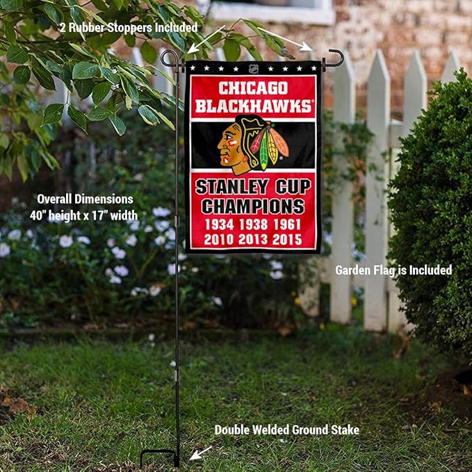 WinCraft Chicago Blackhawks 6 Time Champions Garden Flag and Pole Stand Holder