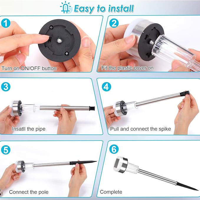 • EASY TO INSTALL & USE: No addition tools and wires required to install this solar powered landscape light.Just assemble them and insert them into the ground,it is environmental protection and saving.