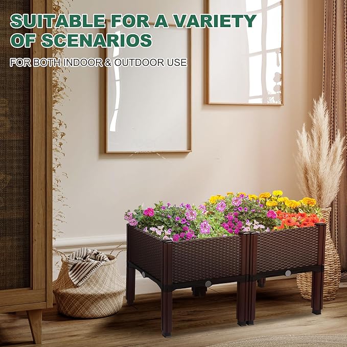 • Durable Construction: Made from reinforced PP in rattan pattern, the planter boxes are lightweight, weather resistance, stylish yet sturdy for long time use