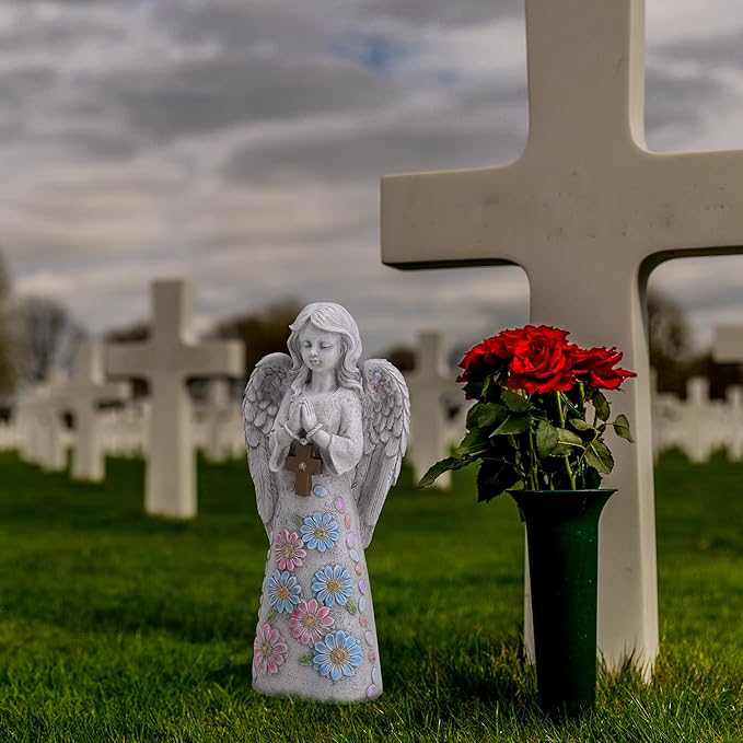 • 【Weather-proof and Durable Material】Made of resin, hand-painted and finished with a UV resistant coating, the outdoor angel figurine is solid and long-lasting, can withstand rain, snow or scorching sun without cracking, fading or rusting. Therefore, it maintains a beautiful look for years to come.
