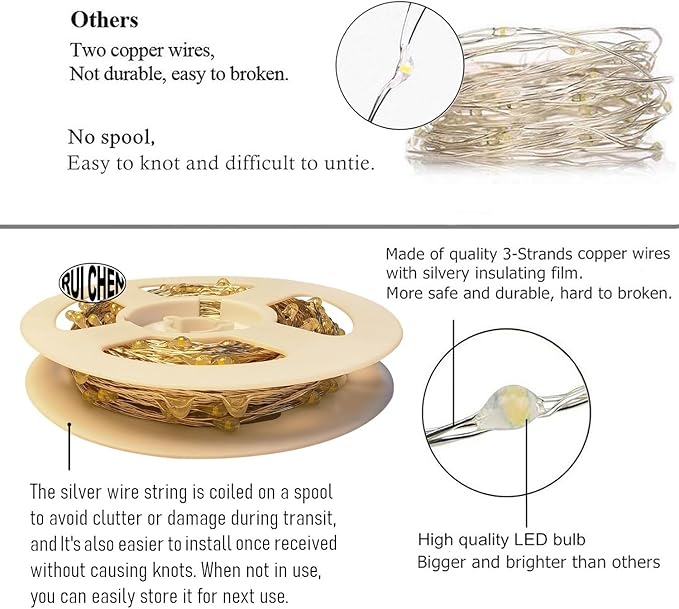 • 🎄Worry-Free After-Sales Service: Please be confident to buy RUICHEN fairy lights. Don't like it once received? Just return it by Amazon. We have a professional customer service team, if you have any questions during use, please feel free to contact us via the Amazon message box.