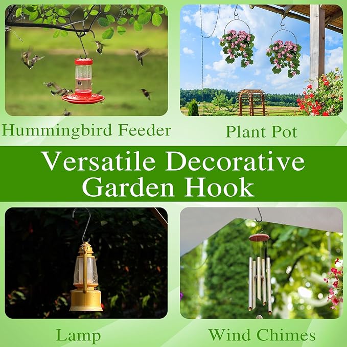 • Package include:4 pack of 12 inch black bird feeder hooks. Large s hooks for hanging plants.