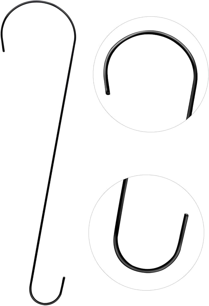 • Multipurpose long S Hooks:Our tree hooks are ideal for hanging bird feeders, bird house, flower pots, baskets, potted plants, Christmas lights, candle holders, wind chimes, lanterns, and more,The S hooks can be used both indoor and outdoor.