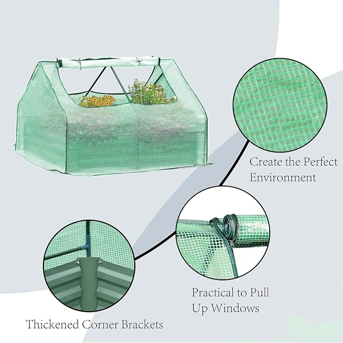 • Robust Construction: Built with a heavy-duty powder-coated steel frame and a green painted finish, the 51" x 39" x 35" galvanized raised garden bed ensures a sturdy foundation, enhancing the overall durability of your gardening setup