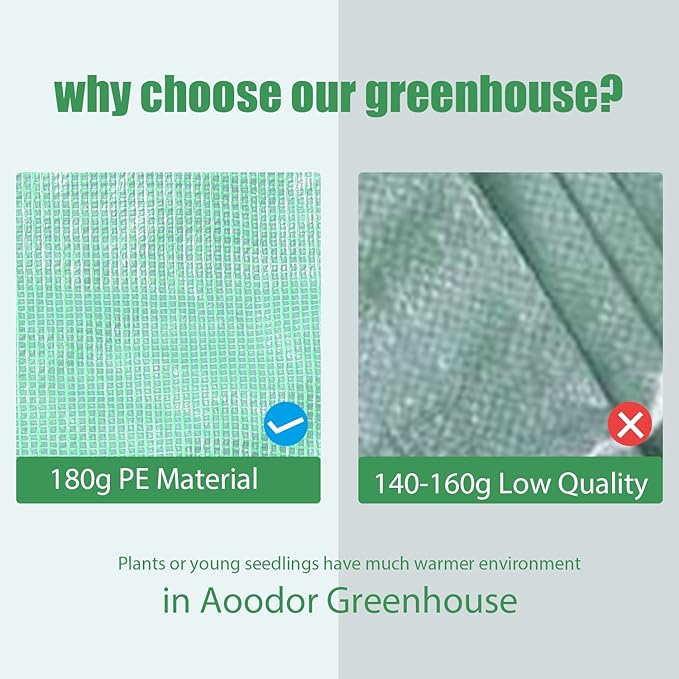 • Plant Protection: The Aoodor mini greenhouse kit shields your plants, seeds, vegetables, herbs, and flowers from the elements. The UV-protected and water-resistant greenhouse cover creates an optimal environment for growth