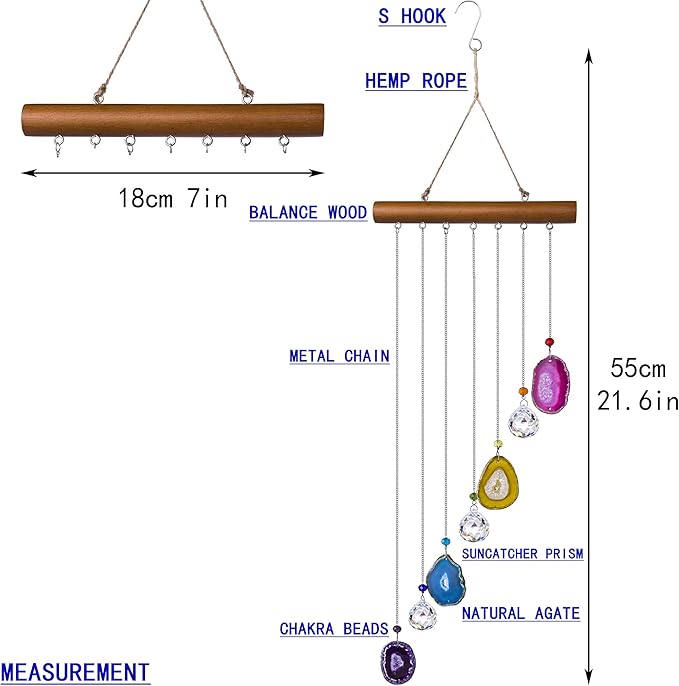 • Design - This crystal prism suncatcher is made of high quality K9 gradecrystal glass suncatcher prisms and beads,polished colorful agate rock slice,metal suncatcher chain,balance wood,hanging hemp rope and metal hook