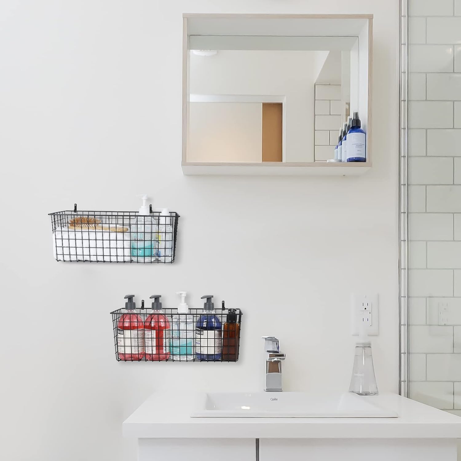• Sturdy Metal Wire Baskets: These metal wall baskets are made of solid metal wire with anti-rust coating, sturdy and durable for long lasting. The wire baskets for organizing open design allows you to see the items inside the basket, which makes it easy to find the item you need. And easy to clean, just wipe clean with a soft damp cloth and dry towel.