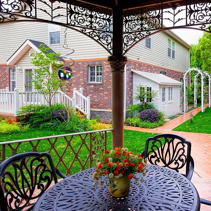 Fonmy Gazing Ball Spiral Tail -Decorative Wind Spinner 11 inch Tail and 2 inch Steel Orb. Indoor Outdoor Garden Decoration Silver Multi Color Ball -13 inch Height
