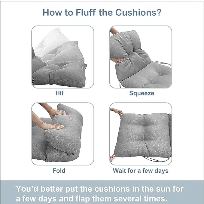 • Tie&Comfort: Strengthened ties keep your cushions securely fastened to the furniture, don’t worry about slipping when you sit on it. Overstuffed soft poly batting will well relief your pressure and bring you great sense of comfort.