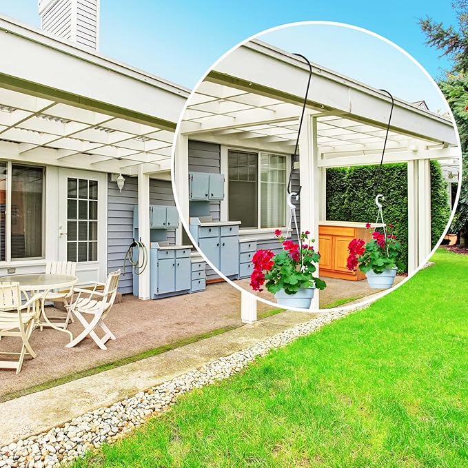 • Widely Use: Our bird feeder hanging hooks can be use for hanging bird feeders, bird house, flower pots, baskets, potted plants, Christmas lights, candle holders, wind chimes, lanterns and more on trees, bushes, gutters, ladders, balconies, garage