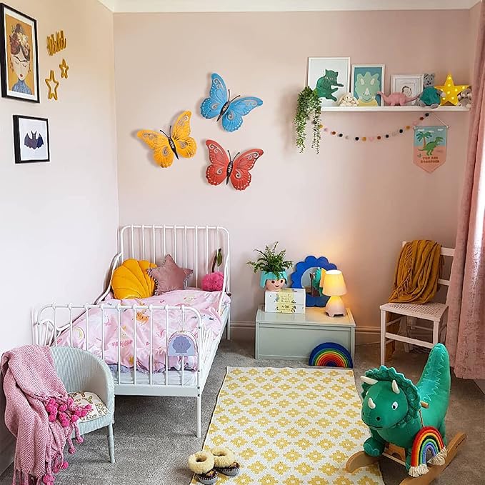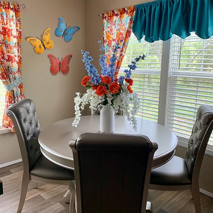 • 【METAL BUTTERFLY WALL DECORATION】3 pack metal butterfly wall art with craft painting. bright color brings your spacious room more refreshing feel of nature. it has been created in high grade metal. the exquisite cutting technology of this metal wall decor makes the butterfly look lifelike.