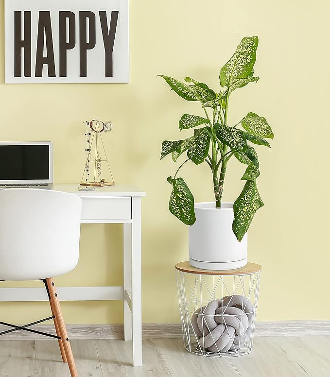 D'vine Dev Set of 2 Plants Pots, 10 Inch Ceramic Planter Pot for Plants with Drainage Hole and Saucer, White, 94-V-E-1