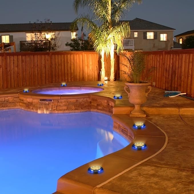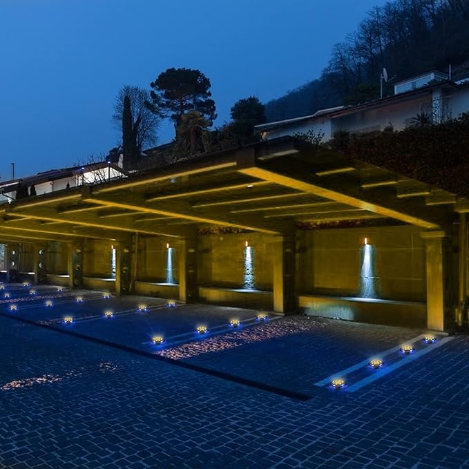 • 💡【Upgraded Solar Lights Outdoor】12 pieces solar outdoor light have 8 warm white main LEDs and 4 blue side LEDs. unlike the old ground lights, this solar light illuminates a wider range of colors, which is both bright and fun.
