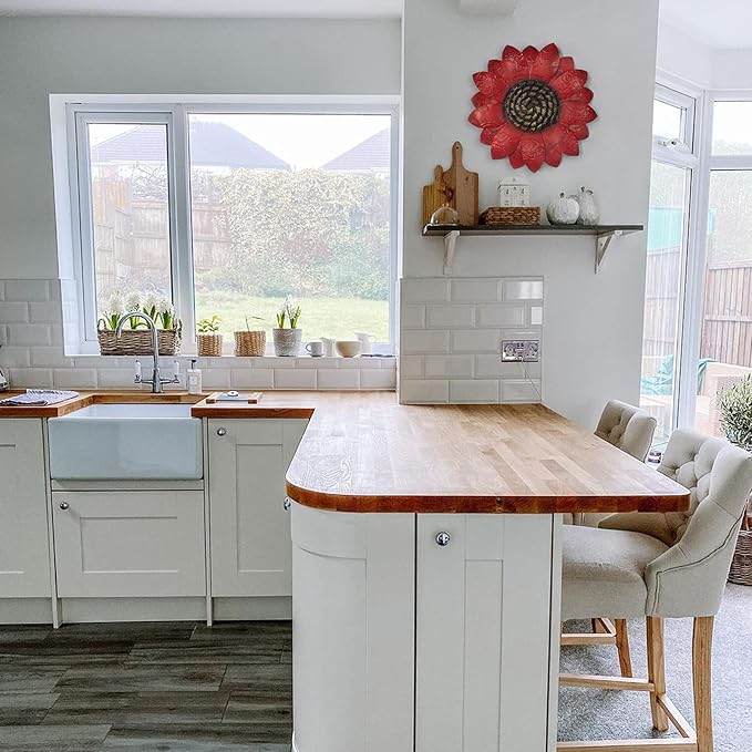 EASICUTI Red Sunflower Metal Flowers Wall Decor Metal Wall Art Decorations Hanging For Indoor Outdoor Home Bathroom Kitchen Room Bedroom Living Room Garden Patio Porch 12 Inch
