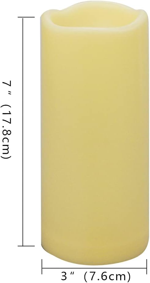 • 【Premium Quality】The 2 PCS x 7in battery operated remote flameless pillar candles are made of high quality plastic realistic resin material which is unscented and color in dark ivory. The led flameless pillar plastic outdoor candles can be widely applied to Holiday, festival decorations, fireplace rustic mantle decor, wedding reception, table centerpiece decorations.