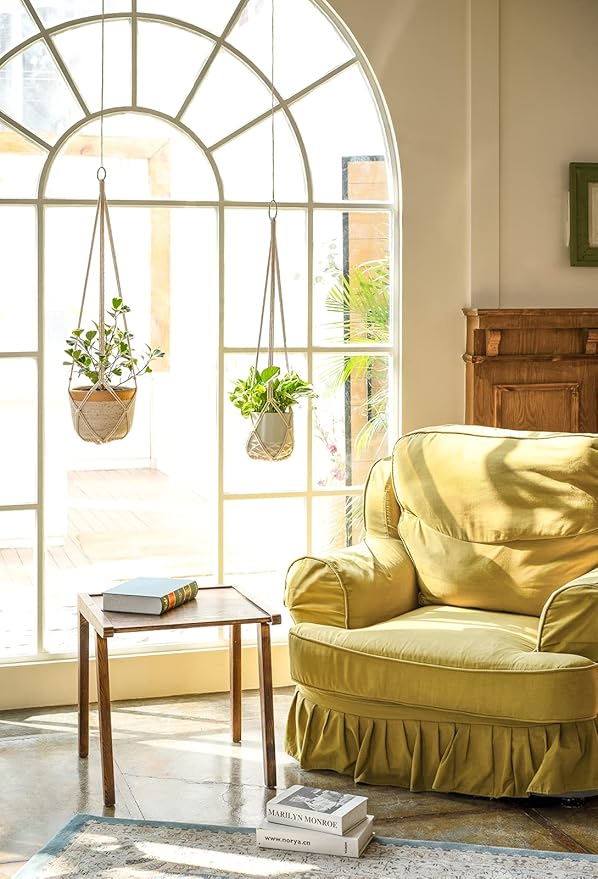 • Widely Used:2 Pack -35 inches cream indoor hanging planter hanger can fit a variety of pots, such as plastic pots, ceramic pots, glass pots, metal pots, so on. It can keep your plants out of your pet's reach and save space.