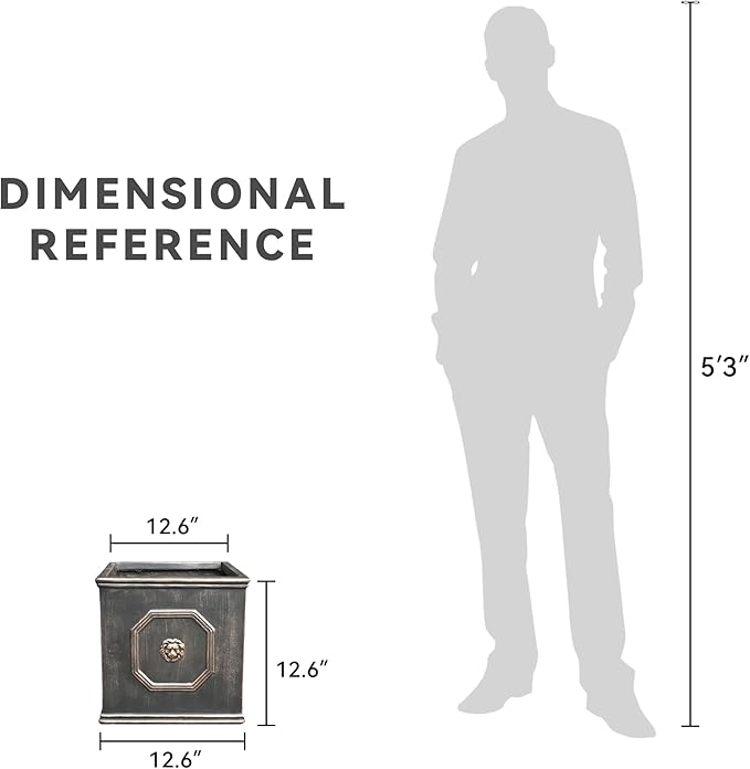 Kante Square Lion Head Concrete Planter, Classic English Style Plant Pot with Drainage Hole and Rubber Plug for Indoor Outdoor Garden Patio Home, 12.6"x12.6"x12.6" Metallic Chestnut