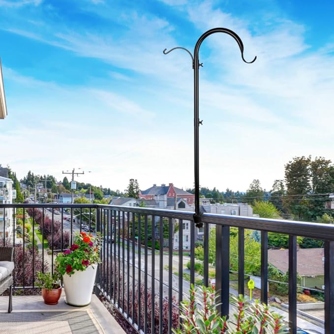 • PERFECT CONSTRUCTION AND GREAT GIFT IDEA: Each branch of deck hook can rotate 360 degree on the pole and it can be adjusted at different angles. It is a great gift for plant or bird lovers who can hang bird feeders, plant pots or any other decoration on the deck hook