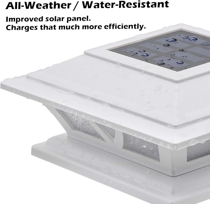 • 【IP44 Waterproof】Solar fence post light has an IP44 waterproof rating and is made of tough ABS. It will withstand harsh heat, heavy downpour, and snow. You can rest assure to use, in any outdoor environments.