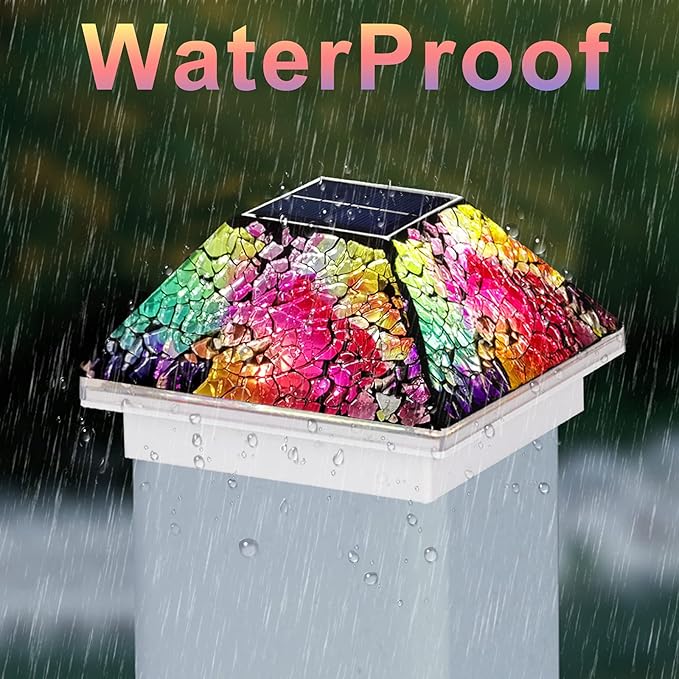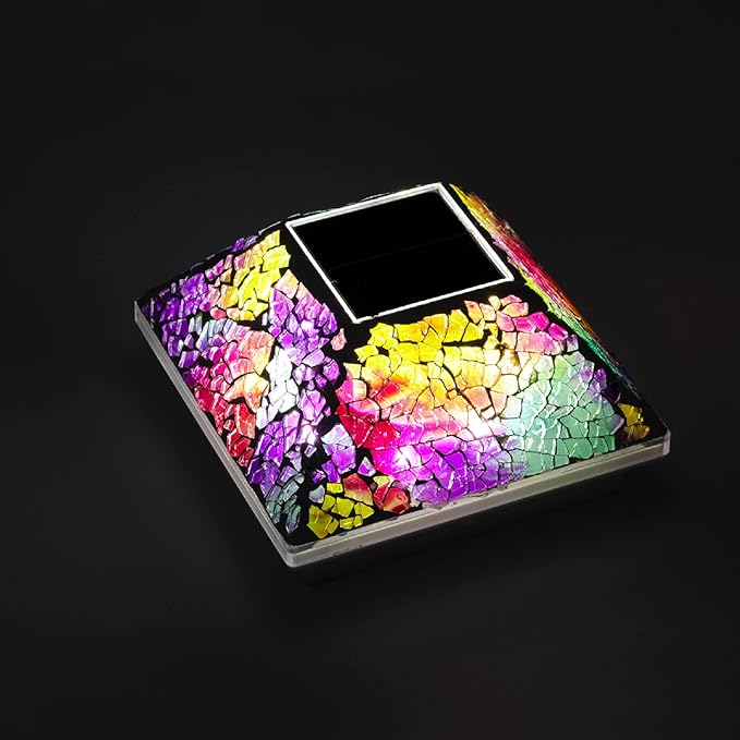 • 【Mosaic Design】The surface of solar post cap lights are covered with crackle mosaic glasses. Pure handmade means that each fence post solar lights are unique. The light will be reflected from the LED lights inside.