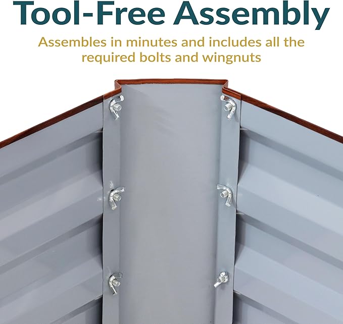• EASY TO USE: All hardware needed to assemble this raised garden bed kit is included (screwdriver required but not included). Simply place the kit above ground, add soil, and watch your vegetables and plants grow.