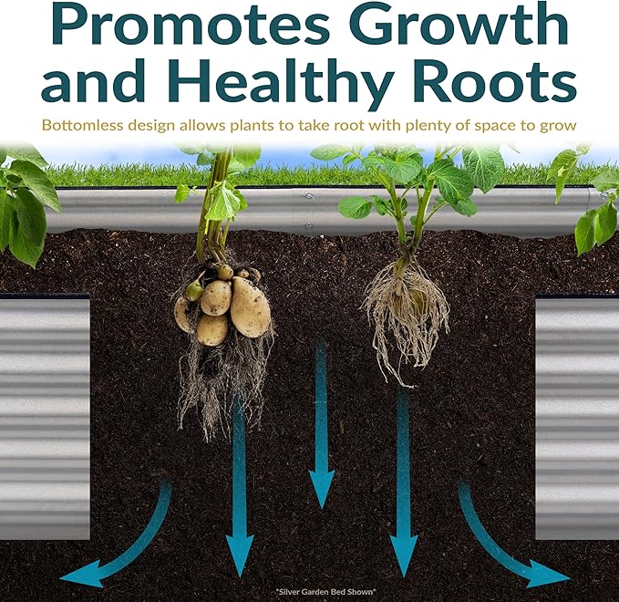 • PROMOTES HEALTHY PLANTS: The raised metal garden bed improves soil structure and drainage, reducing the risk of waterlogging and root rot. The elevated design keeps soil warmer and less compacted, promoting faster germination and stronger root systems. The garden bed also provides plants with better aeration, access to nutrients, and protection from common ground-level pests for more better growth and higher yields.