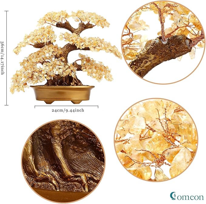 Feng Shui Money Tree Large Pine Tree Style Crystal Quartz Lucky Tree Gem Tree for Office Home Feng Shui Decoration for Wealth/Fortune and Luck (Yellow)