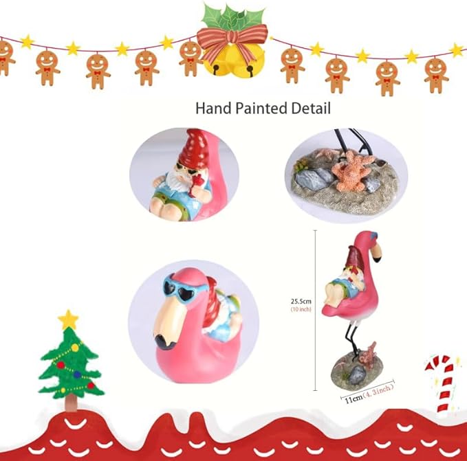 • Unique Gnome & Flamingo Design: Our funny gnome, relaxing on a flamingo, adds imagination and charm to your garden. Gnomes are also believed to bring good luck, enhancing the ambiance of your outdoor space.