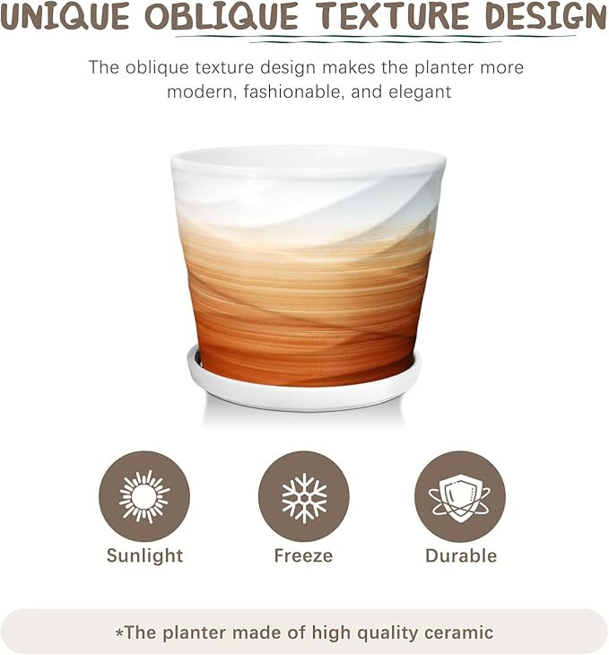 • 【High Quality Ceramic】The indoor plant pots is made of ceramic, glazed inside and out, with enough weight to make it more durable by not tipping over. It can withstand strong sunlight and cold temperatures indoors or outdoors.