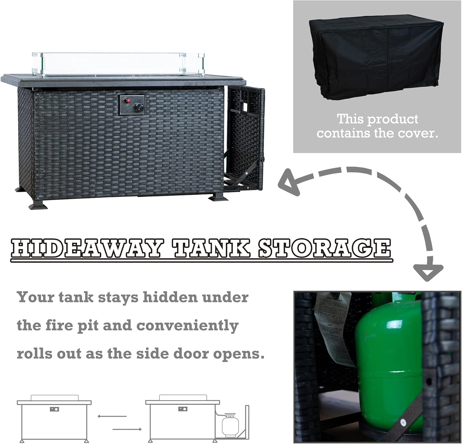 • ✅Slide Out Tank Holder - The patio fire pit table has a slide-out tank holder, making it easy to change the propane tank when needed.