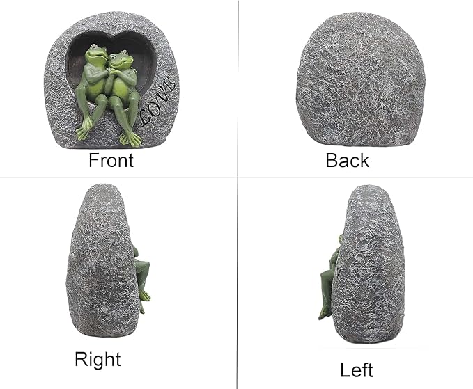 • 🌹Great Design - A frog couple embracing on a rock which with a heart hollow shape. This decorative frogs suit to be placed on flower bed, fairy garden, and as a frog stuff collection.