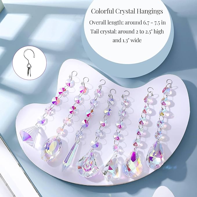 • Crystal Sun Catchers with Hooks: Crystal prisms hanging ornaments are exquisitely handicrafts and you can hang them on windows, cars, curtains, balconies, doorways, walls, chandeliers, plants or Christmas trees