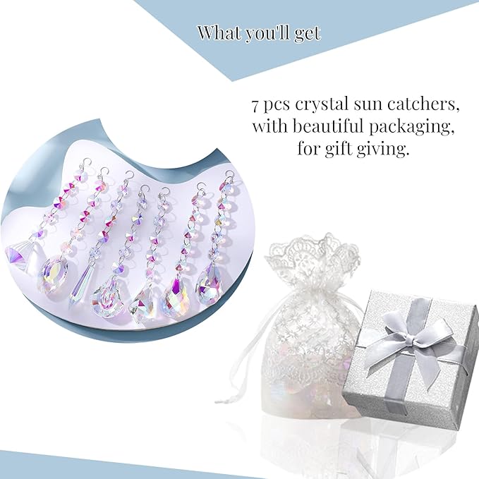 • For Gifting: Our rainbow suncatchers set comes beautifully packaged with a bag and box for the gift of those who like sparkling things or those who you want to add some light and color to their day