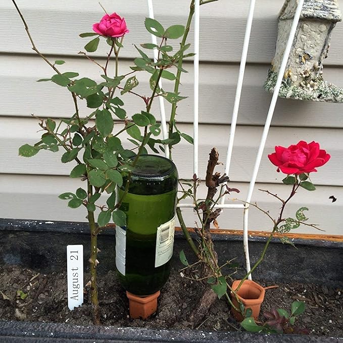 • Simply recycle any long-necked bottles such as wine bottles, glass beer bottles, soft drink bottles, etc. No other accessories are needed. Place this device into the soil and fill the bottle with water and you're done.