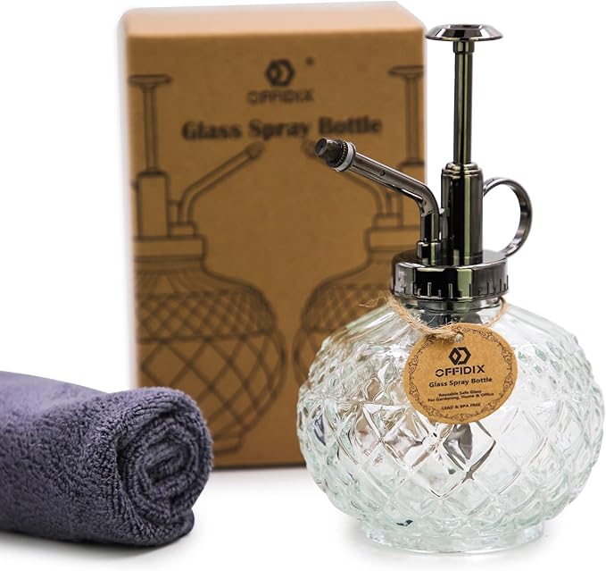 • Small Size and Large Capacity: The plant mister is only 5.9" tall, but has a capacity of 300ml, which is enough for most indoor plant.Buy this glass spray bottle and get a rag to keep your favorite glass spray bottle and plant surroundings clean forever.
